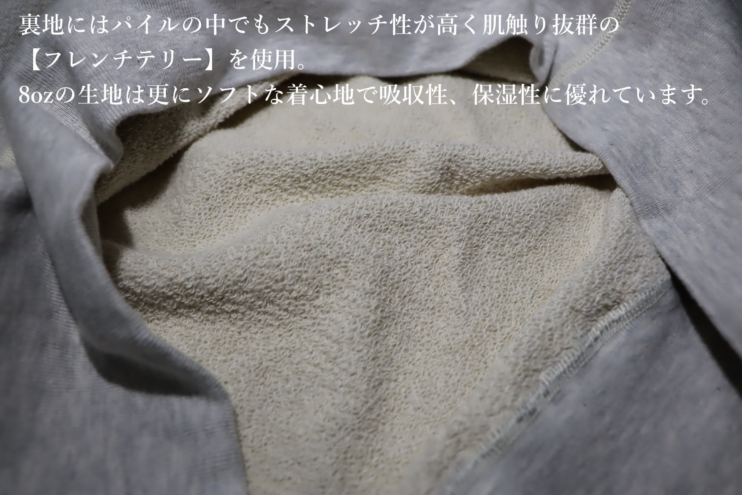 裏地は〝フレンチテリーパイル〝を使い高いストレッチ性と柔らかい着心地で、ストレスフリーを体感できます。